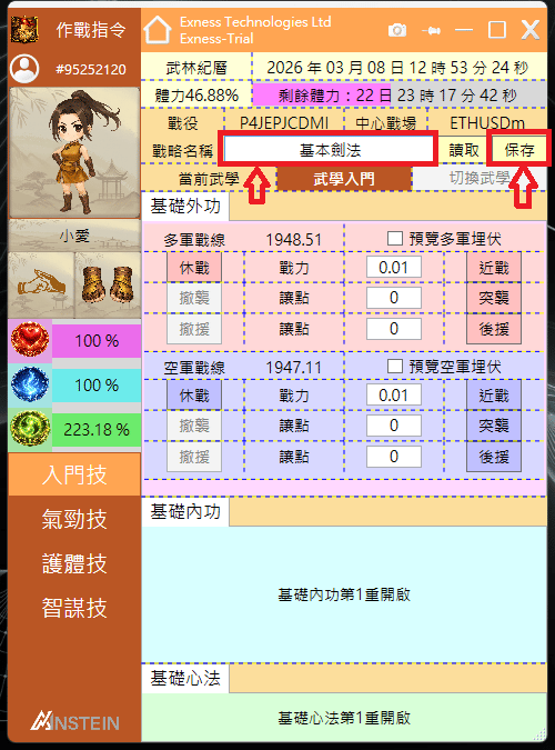 對不同交易品種可以設置不同戰略組合與名稱,通常價差波動大的商品由於風險較高,因此我們設置的基礎戰力就會較小;