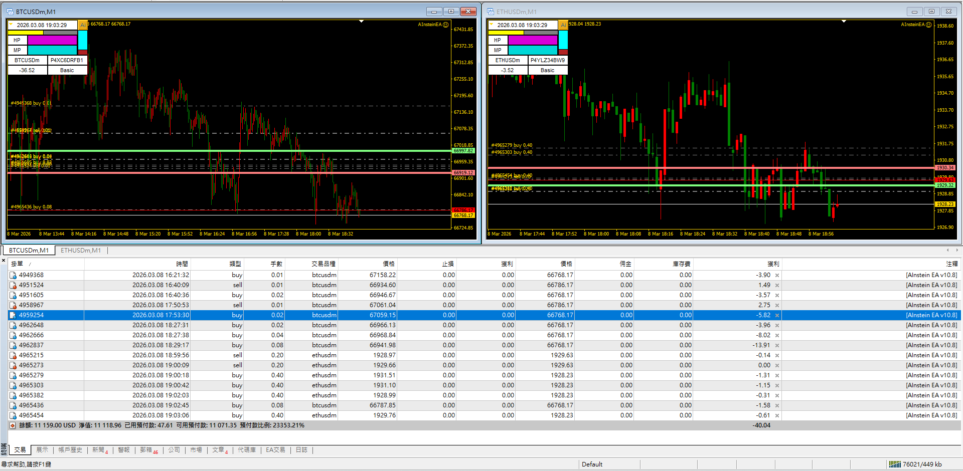 「世界戰場」顯示的是我們當前帳戶所有持倉訂單的資訊: